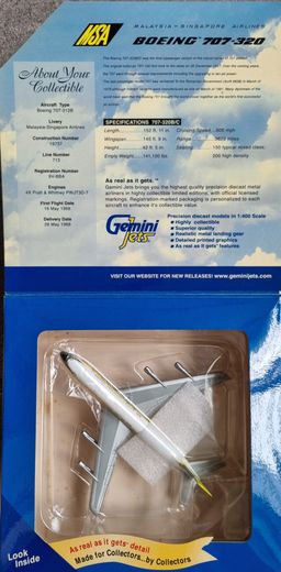 GJMSA386 GeminiJets 707-320B 1/400 Model 9V-BBA Malaysia Singapore