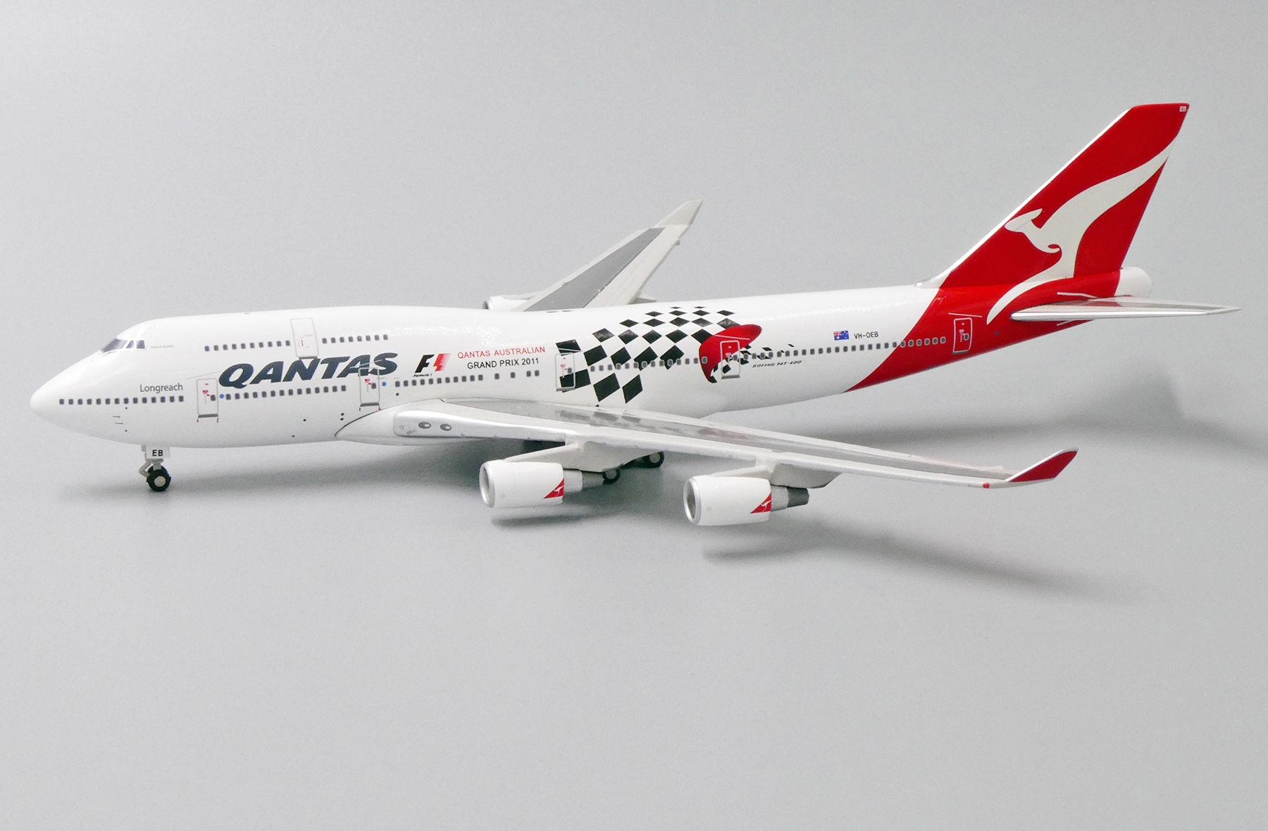 Qantas Boeing 747-400 VH-OEB Grand Prix 2011 Gemini Jets GJQFA1058 1:400 RARE