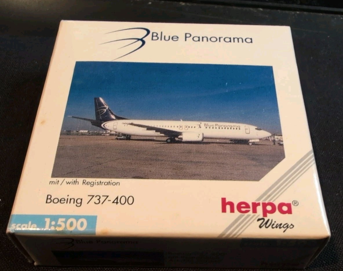 Herpa Wings Scale 1:500 Blue Panorama B737-400 Diecast Model Art.-No. 501347 Box
