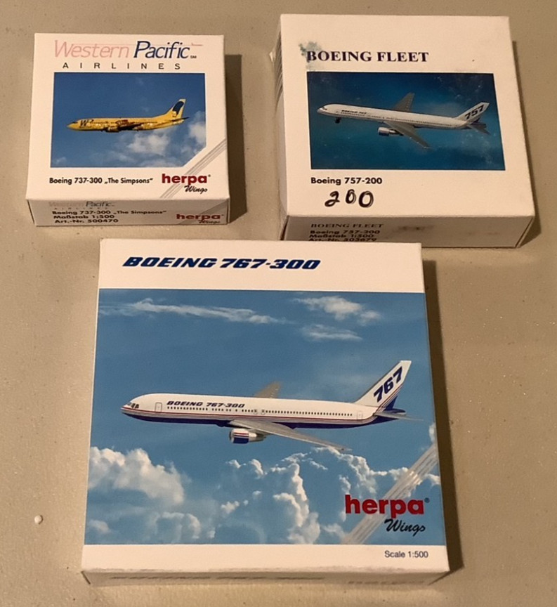 Herpa Wings 1:500 Boeing House Colors 757-200, 767-300, WestPac 737-300 Simpsons