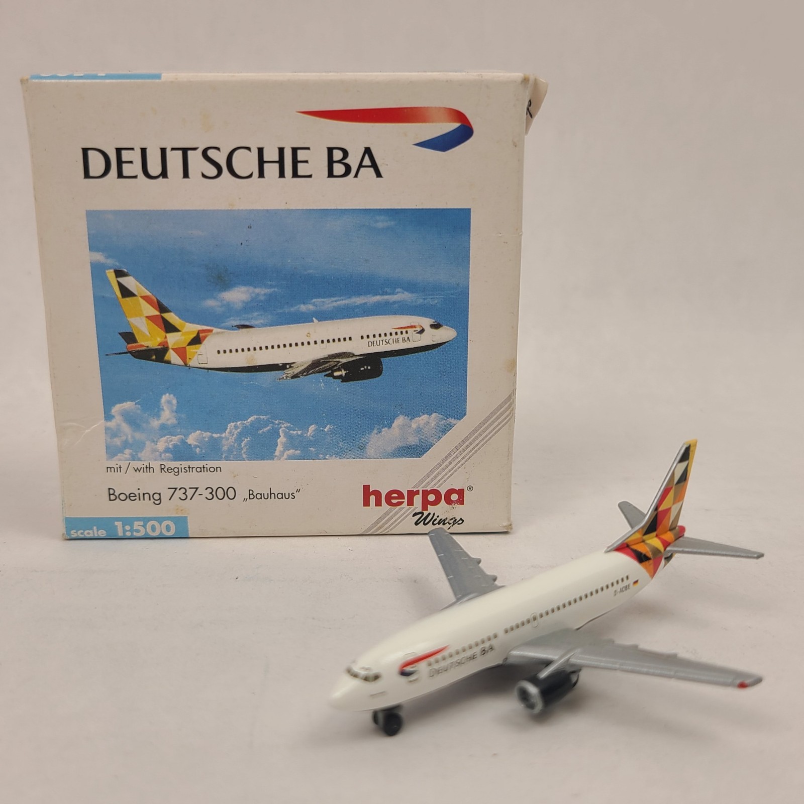 Herpa 1:500 Diecast Deutsche BA Boeing 737-300 "Bauhaus" D-ADBE (511490) MIB