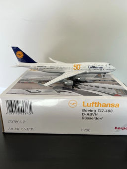 Herpa Lufthansa B 747-430 1:200 553735 50 Years Co-op Boeing Dusseldorf D-ABVH