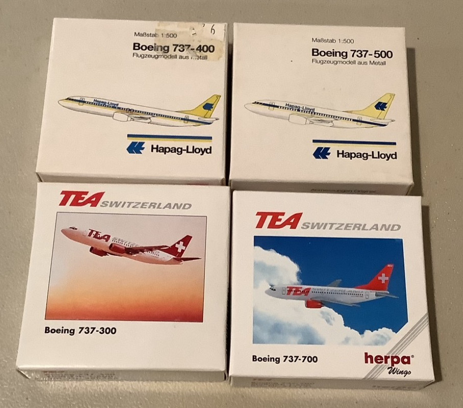 Herpa Wings 1:500 Hapag Lloyd 737-400, 737-500, TEA Switzerland 737-300, 737-700