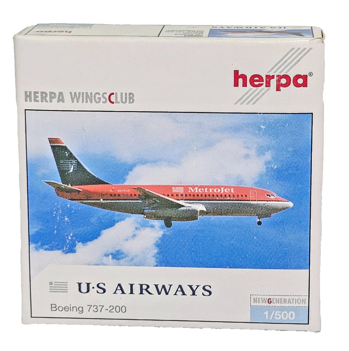 Herpa Number 505963 US Airways Boeing 737-200 Scale 1:500 Die-Cast Model Boxed.