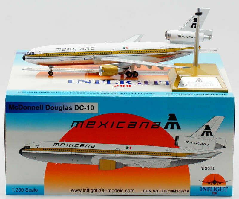 Inflight IFDC10MX0821P Mexicana DC-10-15 N1003L Diecast 1/200 Jet Model Airplane