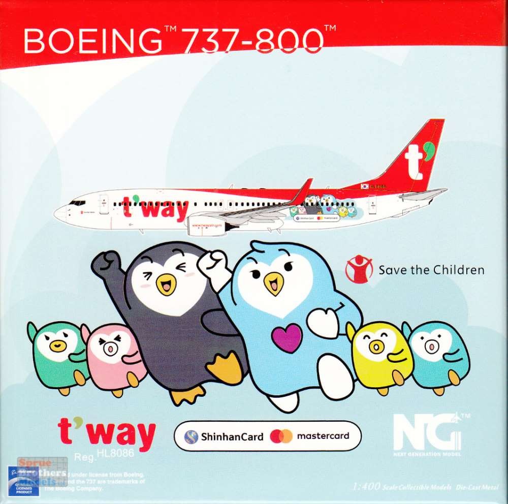 NGM58201 1:400 NG Model T'Way Air B737-800 Reg #HL8086 'Mastercard'