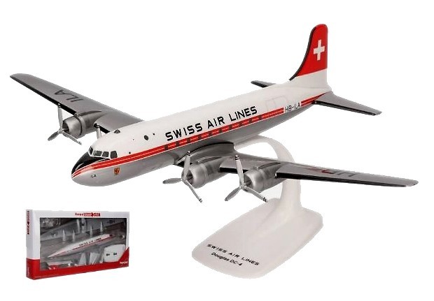 Herpa 1:125 Swiss Air Lines DC-4 Snap-Fit Airplane Model 614030 NIB