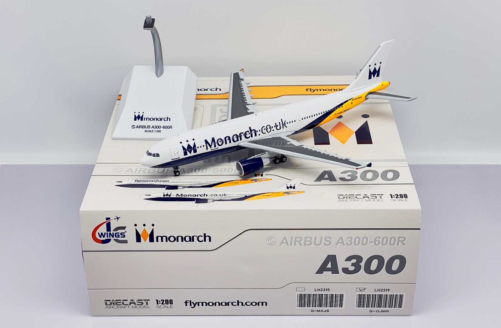 JC Wings LH2319 - 1/200 MONARCH AIRLINES AIRBUS A300-600R REG: G-OJMR WITH STAND