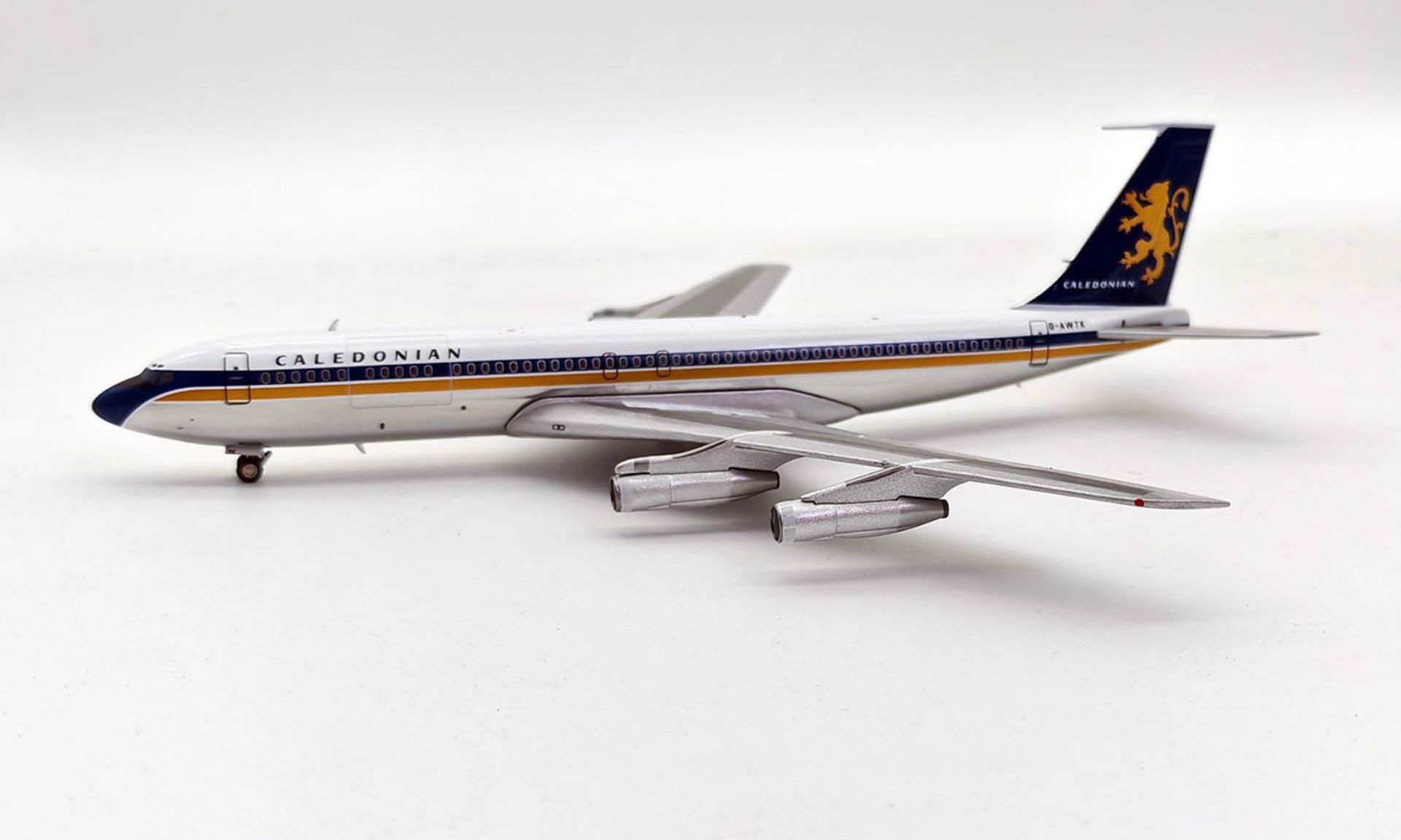 IN FLIGHT 1/200 CALEDONIAN AIRWAYS BOEING 707-349C G-AWTK WITH STAND
