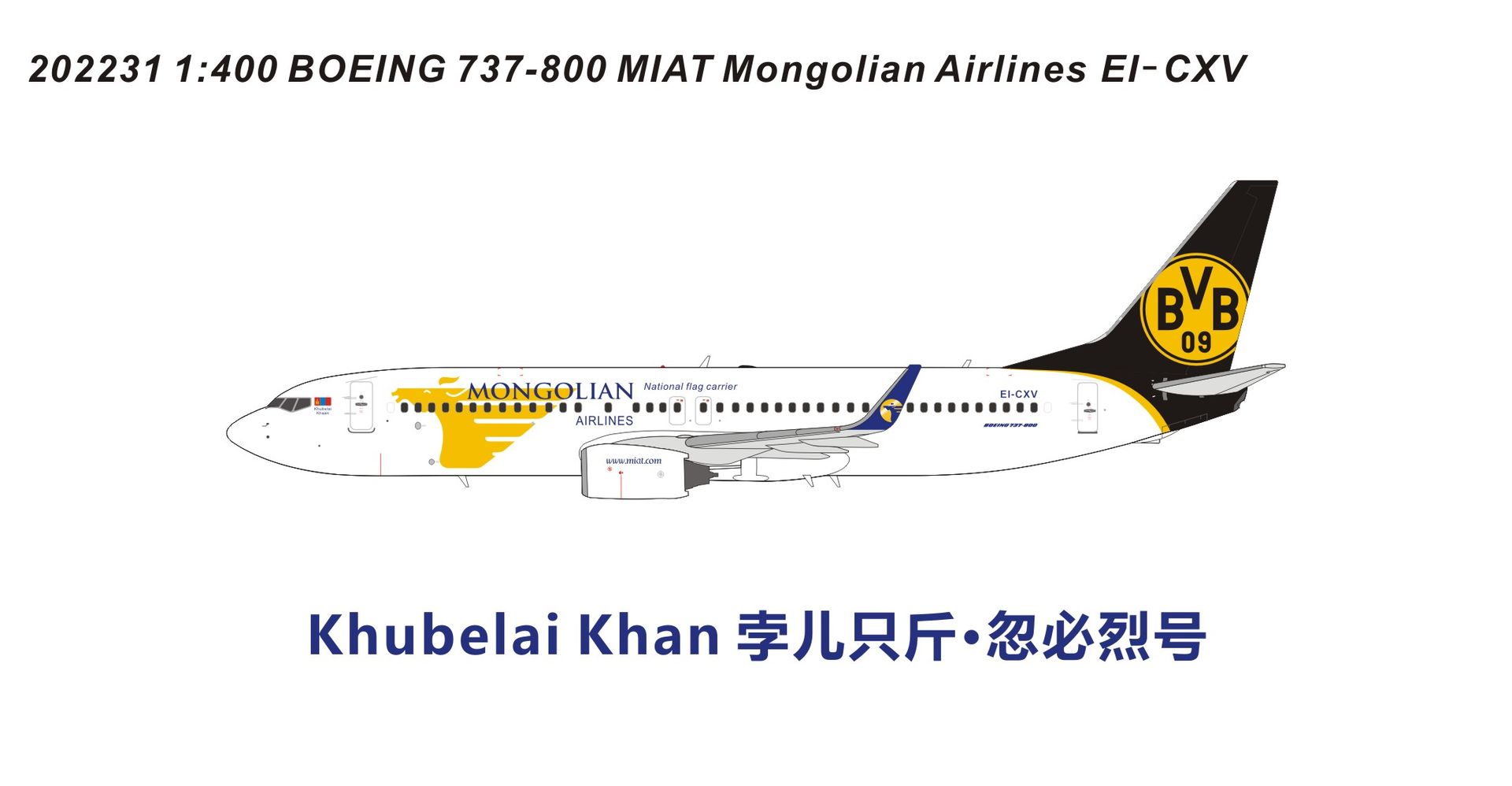 Panda Model 1:400 MIAT Mongolian Airlines Boeing 737-800 w/ Winglets 202231 | MADb