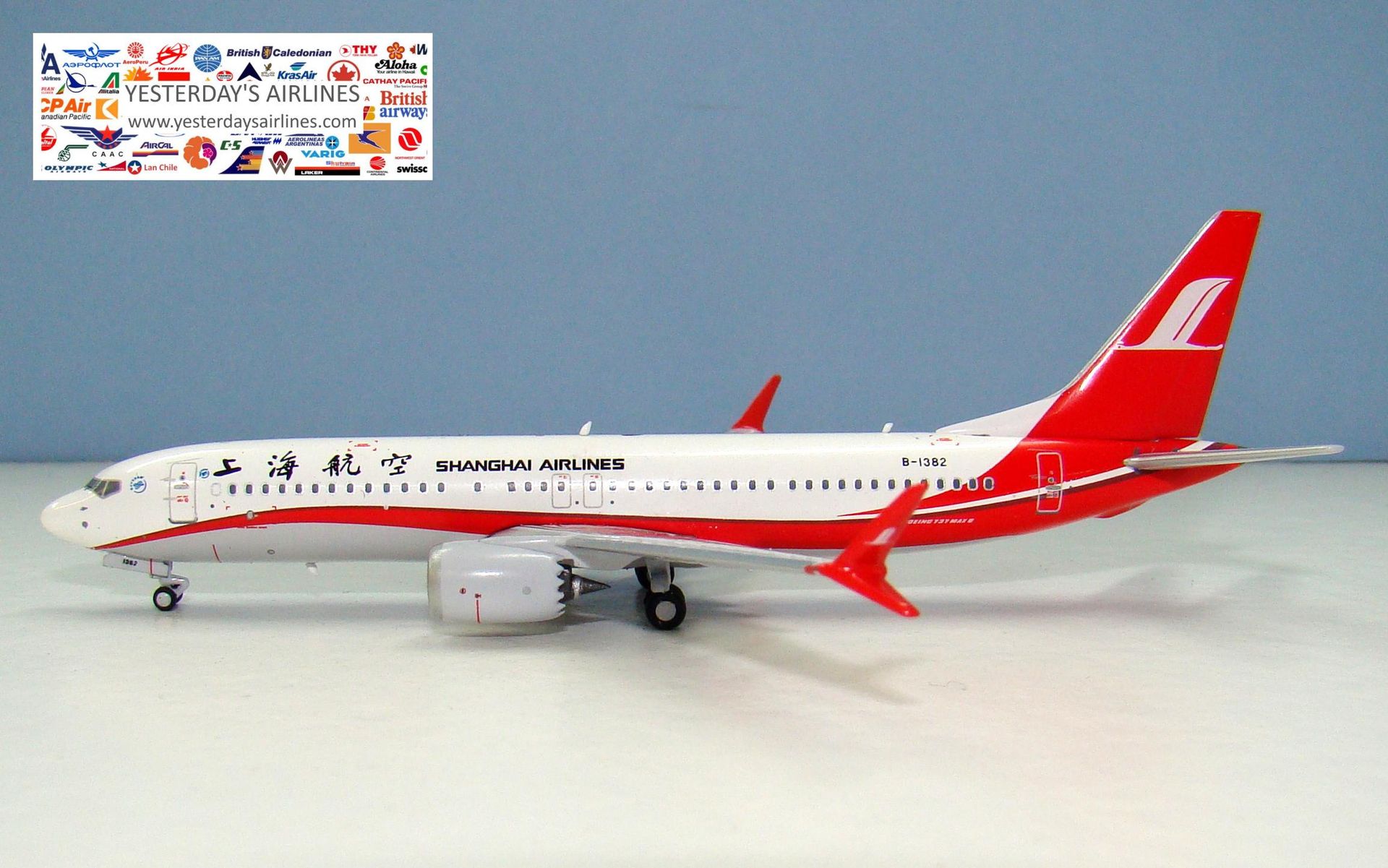 Panda Model 1:400 Shanghai Airlines Boeing 737 MAX 8 PM-B-1382 | MADb