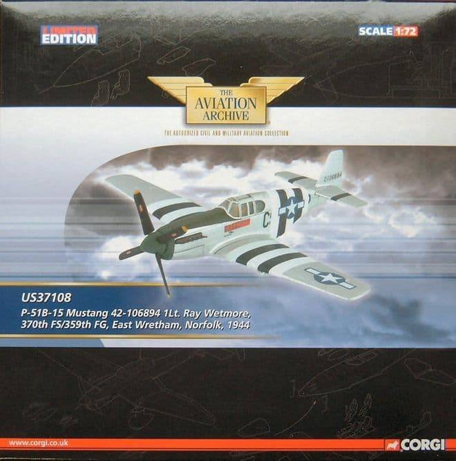 CORGI AVIATION ARCHIVE US37108 P-51B MUSTANG RAY WETMORE 1944 1:72 LTD ED