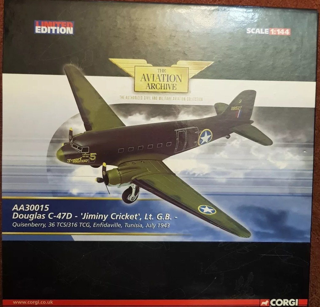 Corgi Douglas C-47D Jiminy Cricket Lt GB Quisenberry. 1:144 AA30015 New Retired