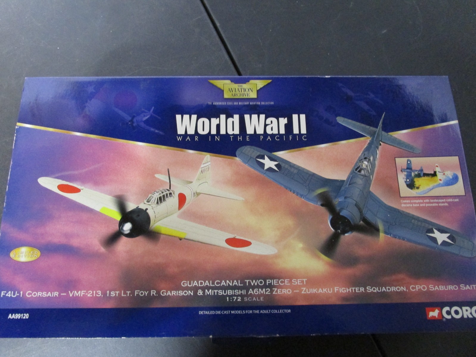 Corgi AA99120 LtdE Guadalcanal WW2 Diorama F4U-1 Corsair & Mitsubishi A6M2 Zero
