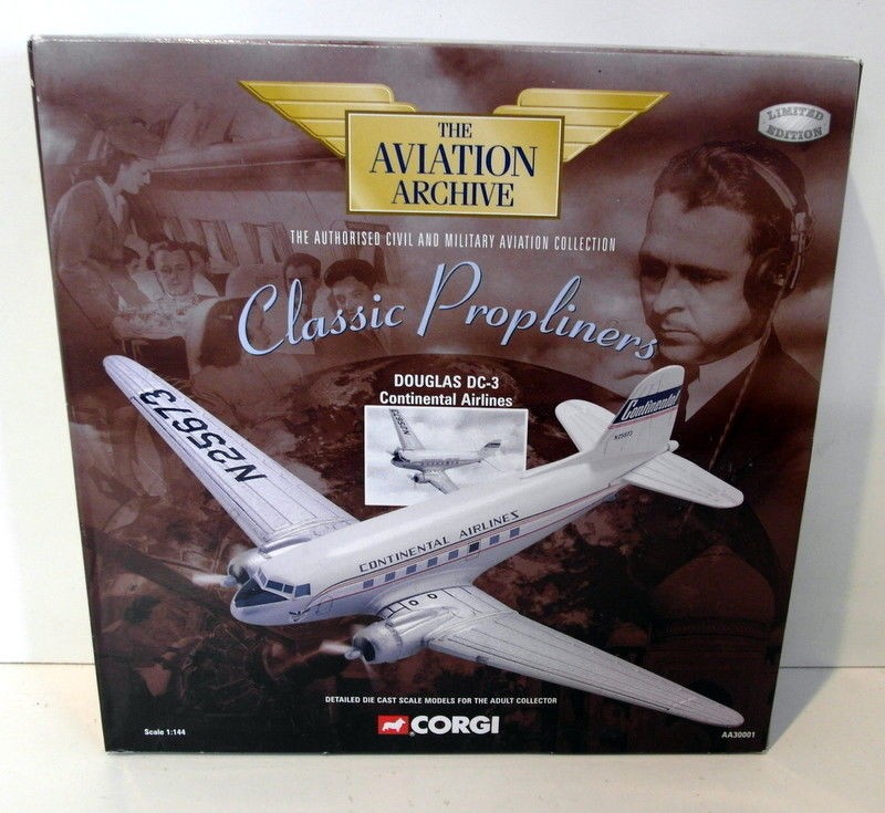 Corgi AA30001 Douglas DC-3 Continental Airlines 1:144 Die Cast Ltd Ed. Propliner