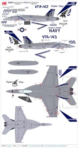 HA5126 Hobby Master F/A-18E Super Hornet 1/72 Model AG100 USN VFA-143 Pukin