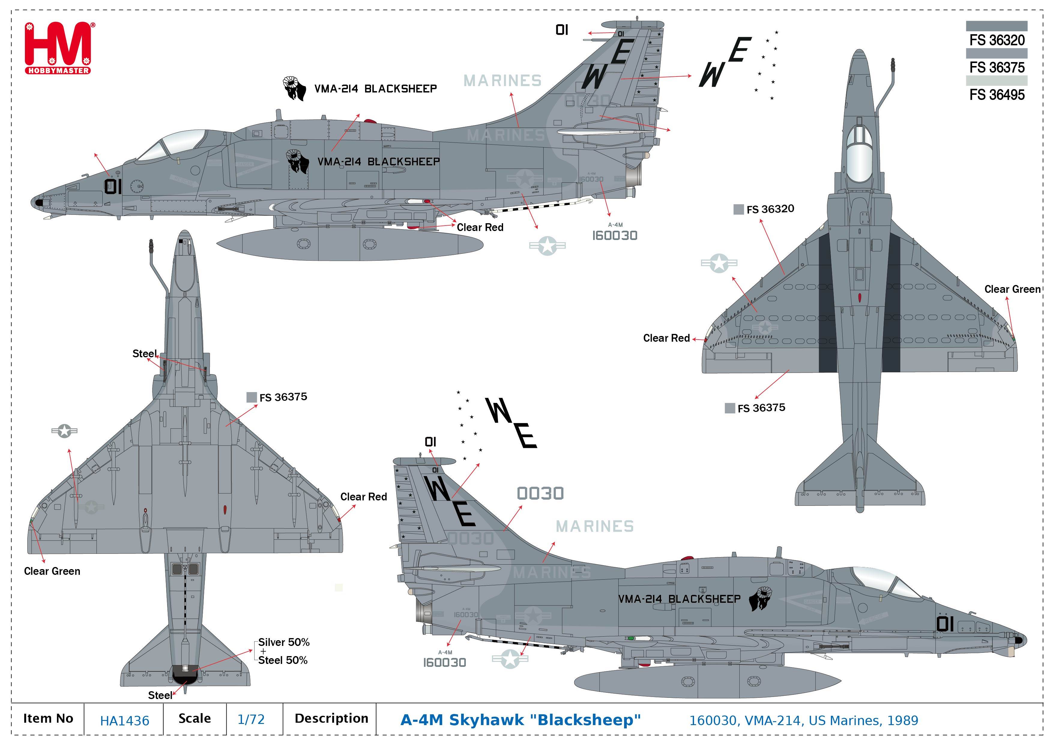 Hobby Master HA1436, A-4M Skyhawk "Blacksheep" 160030, VMA-214, US Marines, 1:72