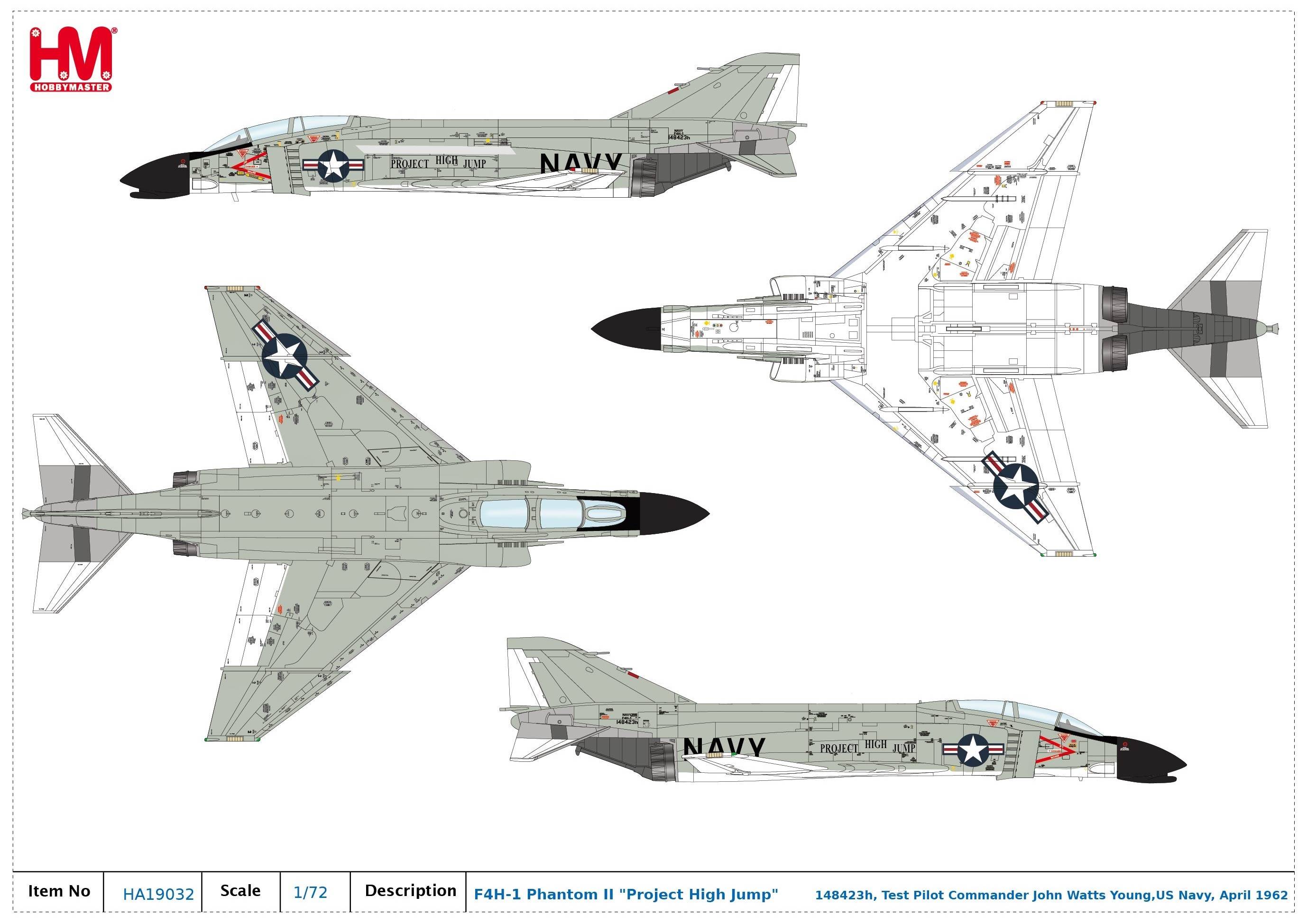 Hobby Master HA19032, F4H-1 Phantom II "Project High Jump" 148423h, 1:72