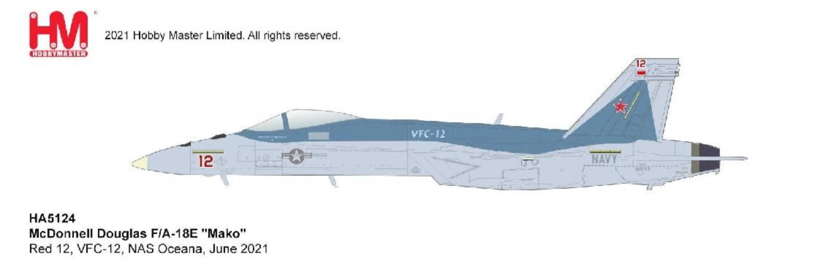 Hobby Master HA5124, F/A-18E "Mako" Red 12, VFC-12, NAS Oceana, June 2021, 1:72