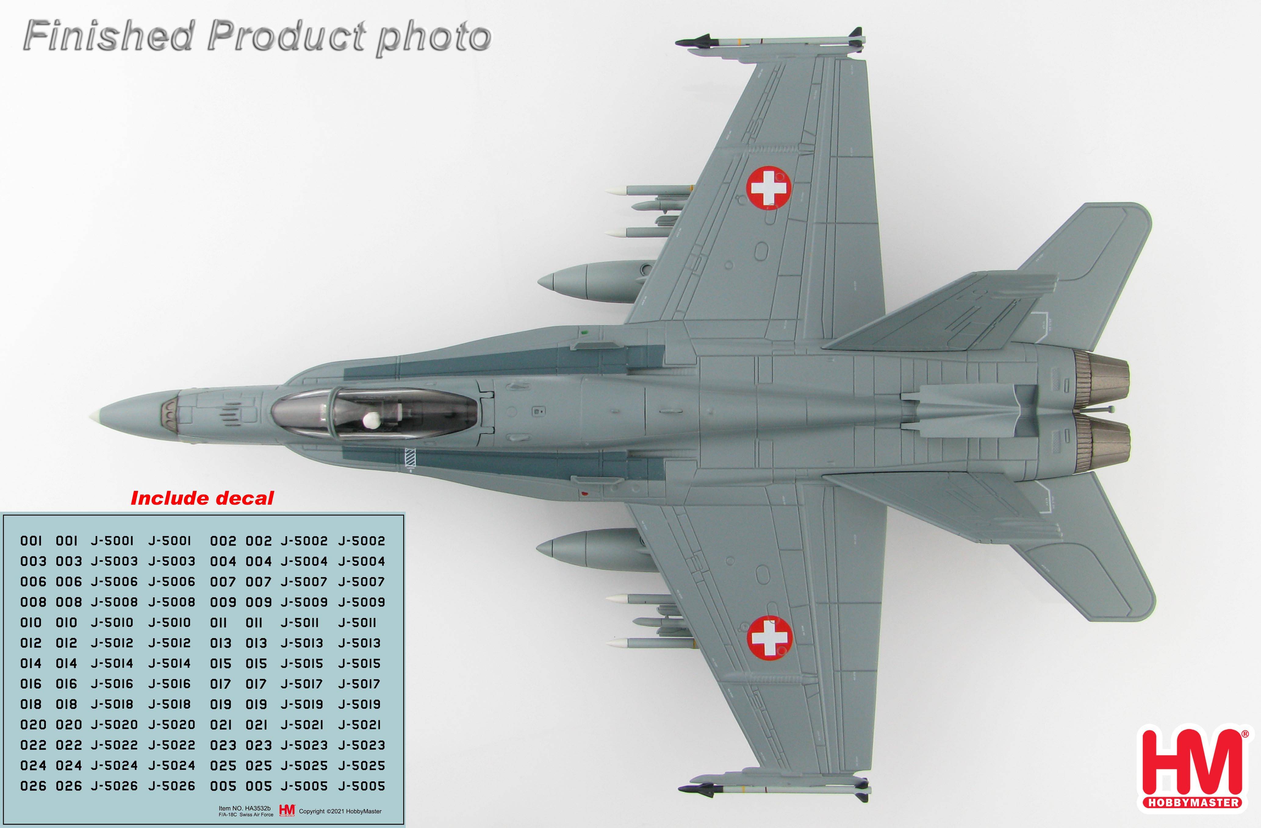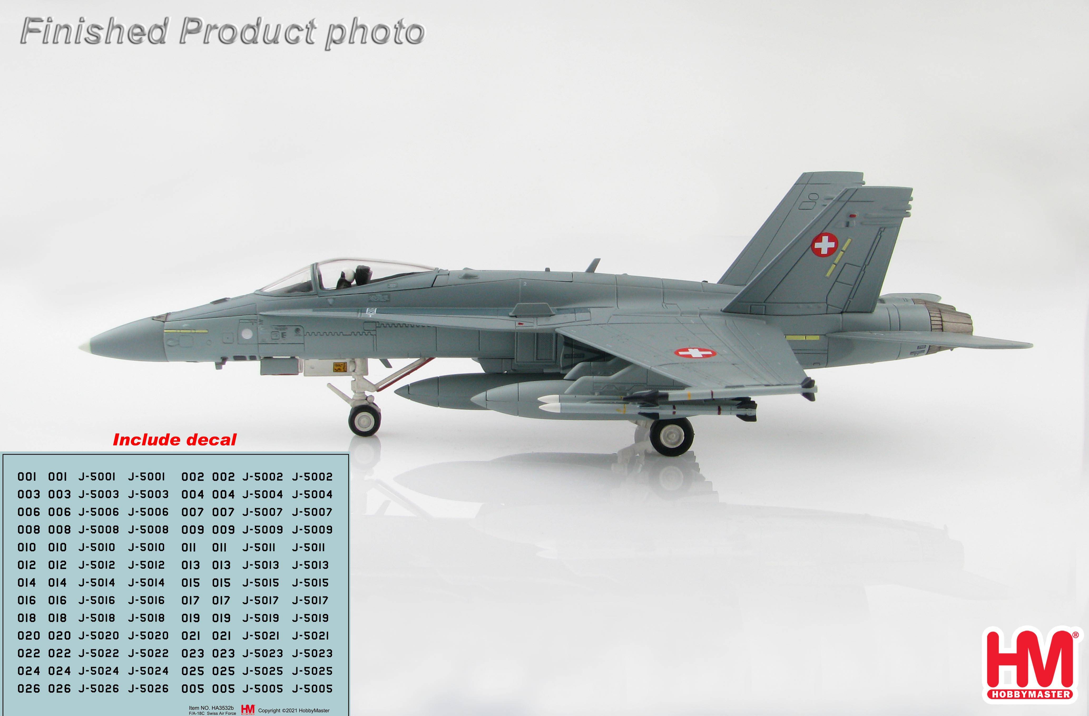 HOBBY MASTER HA3532B McDonnell Douglas FA-18C Swiss Air Force Decals J-5001-5026