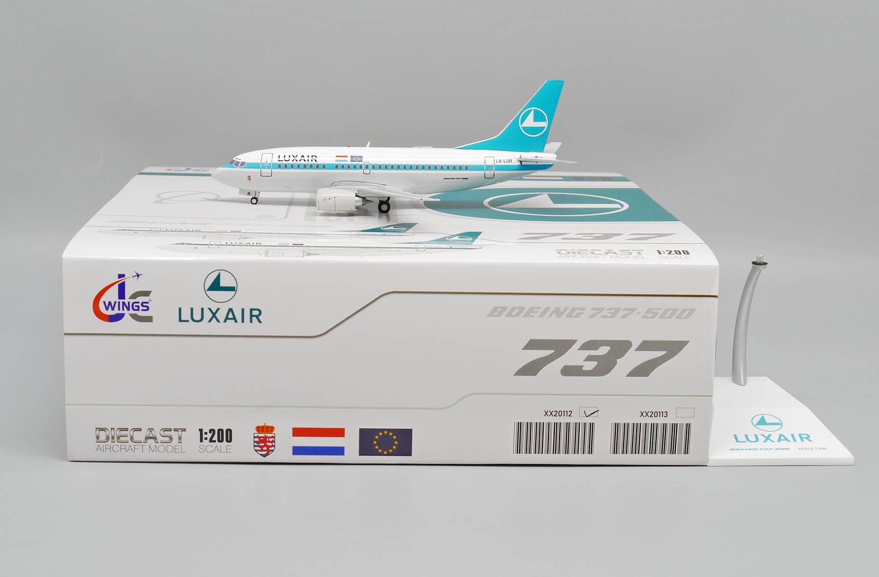 BOEING 737-500 LUXAIR REG: LX-LGR WITH STAND - JC WINGS XX20112 1/200