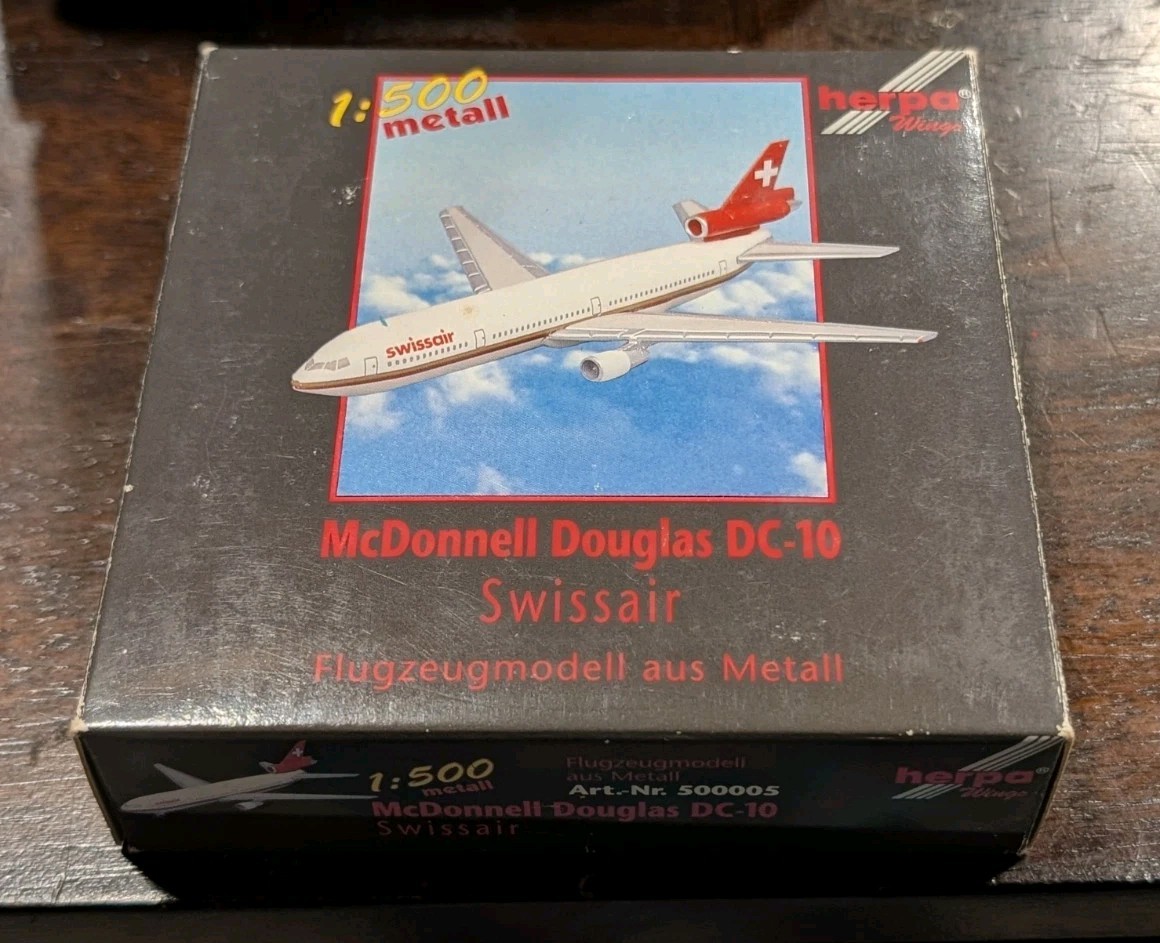 VTG Herpa 1:500 Swissair McDonnell Douglas DC-10 Diecast Mint Model Plane In Box
