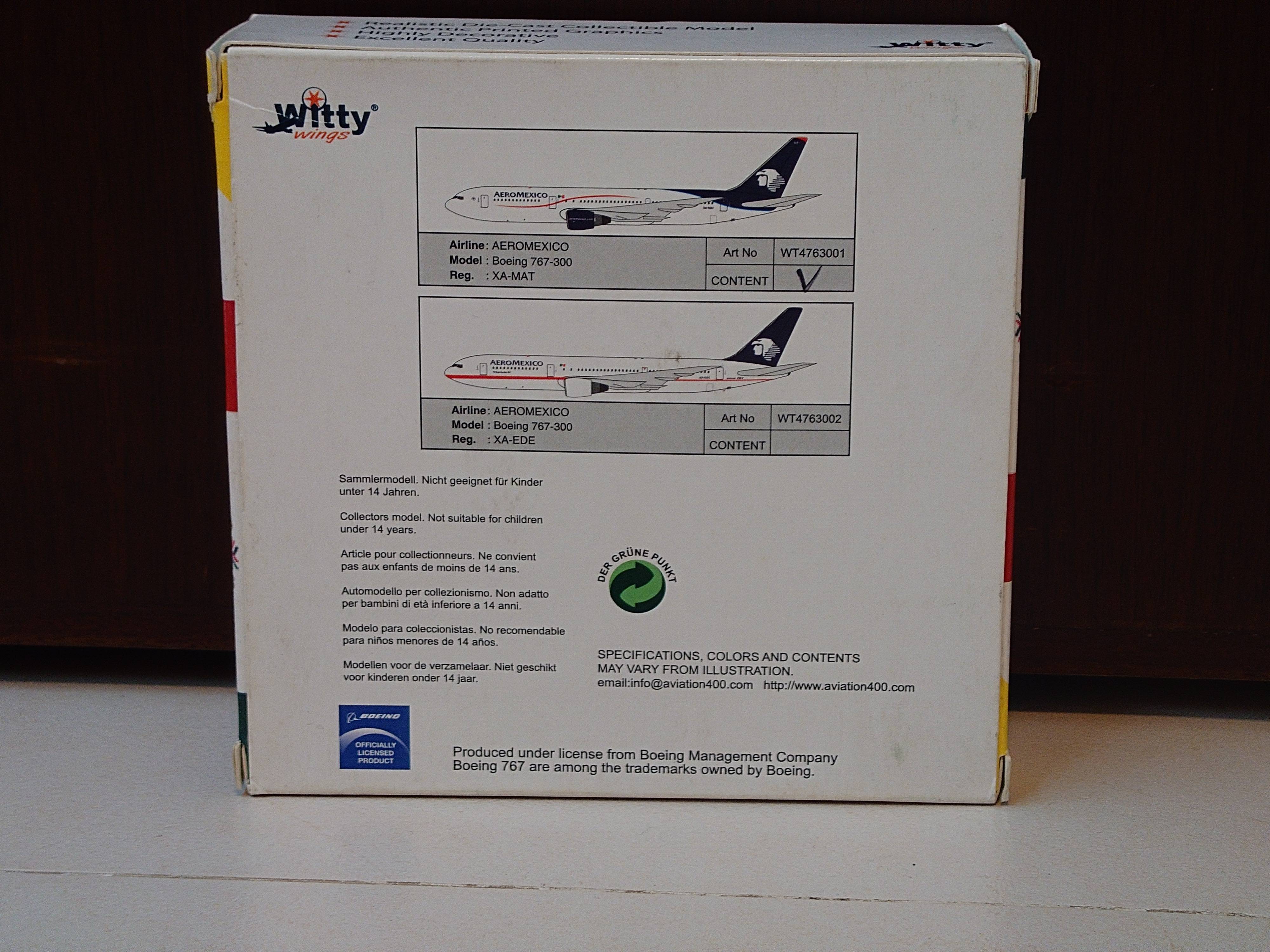 Witty Wings 1:400 Aeromexico Boeing 767-300 WTW-4-763-001 | MADb