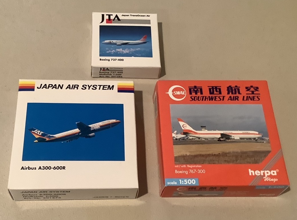Herpa Wings 1:500 JTA Boeing 737-400, JAS Airbus A300-600R, Southwest 767-300