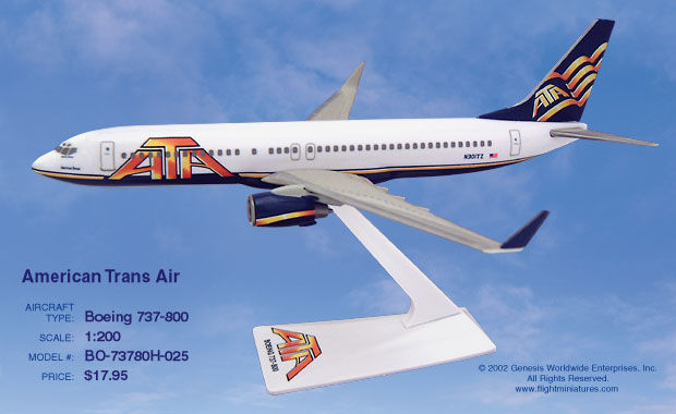 Flight Miniatures 1:200 ATA Airlines Boeing 737-800 w/ Winglets BO-73780H-025 | MADb