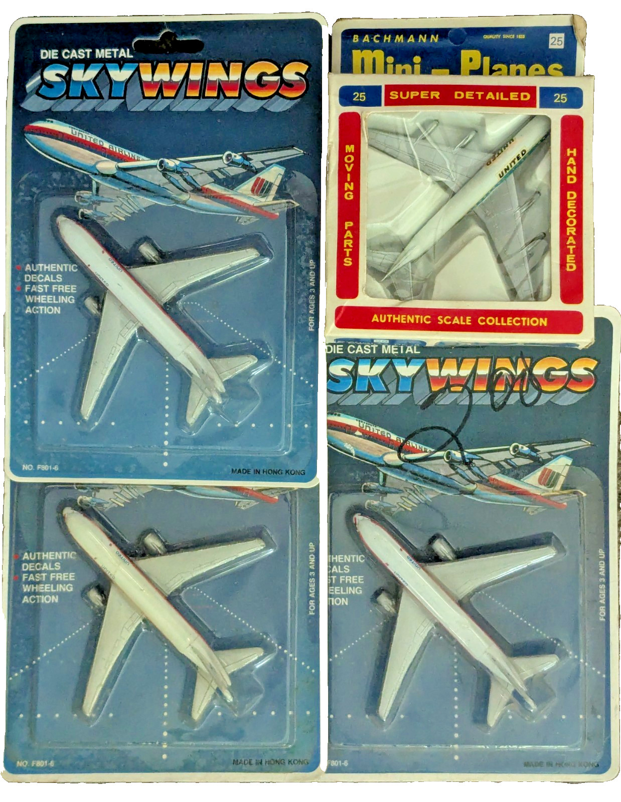 Lot of 3 VTG Sky Wings Die Cast Metal Airplane No. F801-6 United Sealed on Card