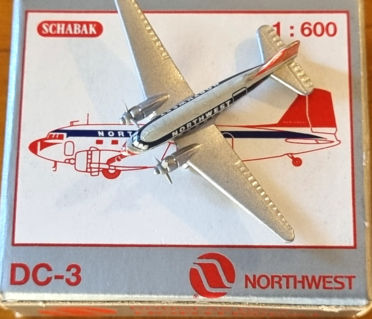 Schabak 1:600 Northwest Air Lines USA Douglas DC3 Model Aircraft Plane 932/37