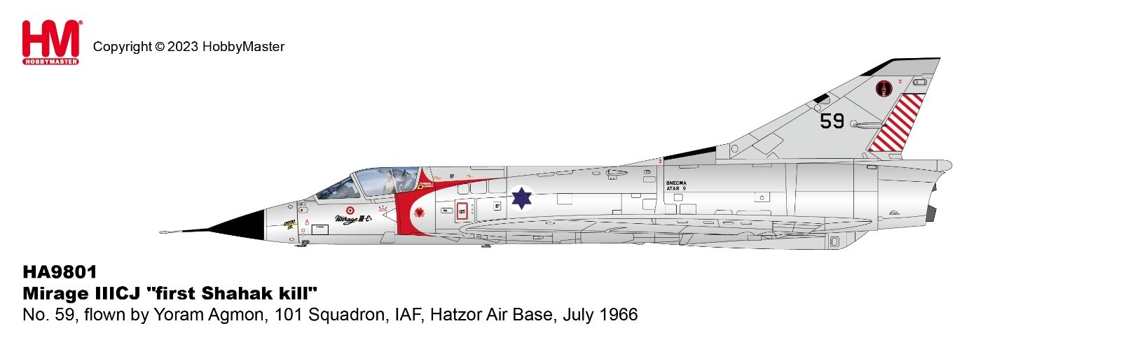Hobby Master HA9801 Mirage IIICJ "first Shahak kill" No. 59, flown by Yoram Agmo