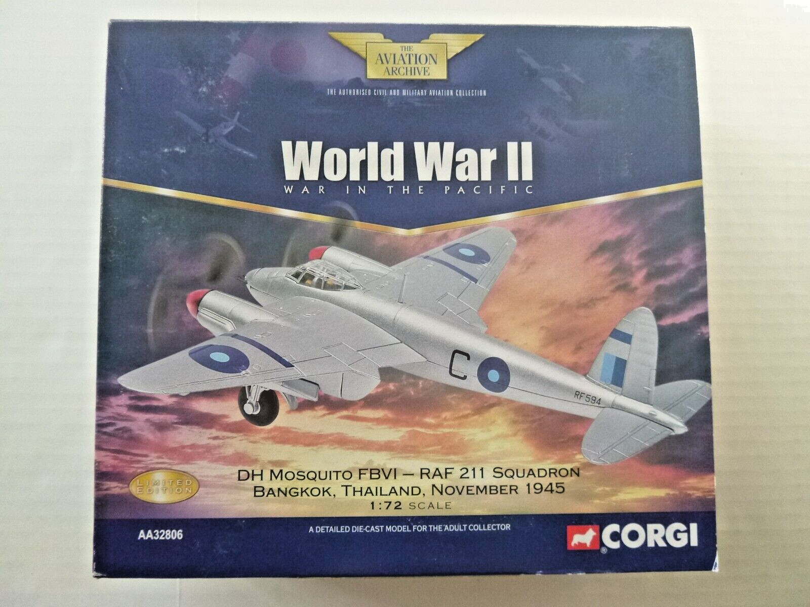CORGI AA32806 DH MOSQUITO FBVI-RAF 211 SQUADRON BANGKOK LTD EDITION