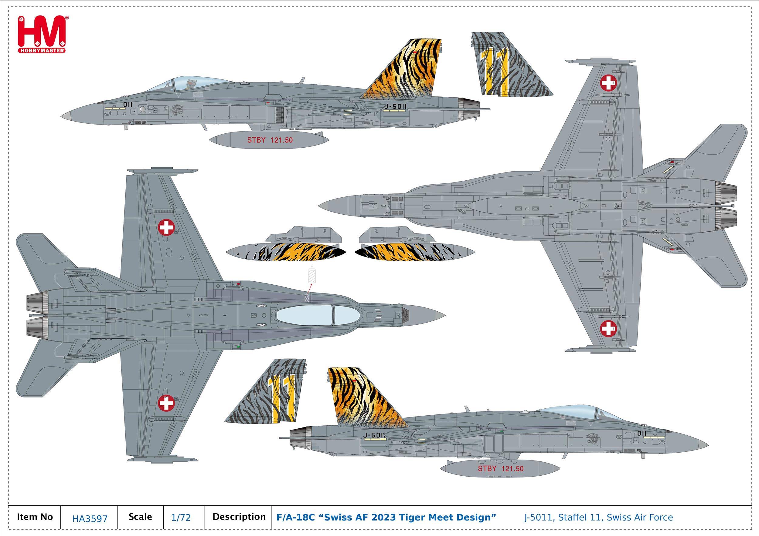 Hobby Master HA3597, F/A-18C "Swiss AF 2003 Tiger Meet" J-5011, Staffel 11, 1:72