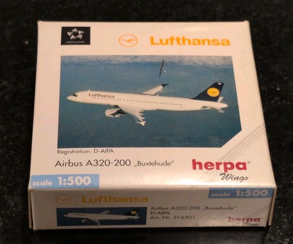 HERPA 1/500 SCALE LUFTHANSA 516501 A320-200 MODEL EDITION NO WINDOW BOX