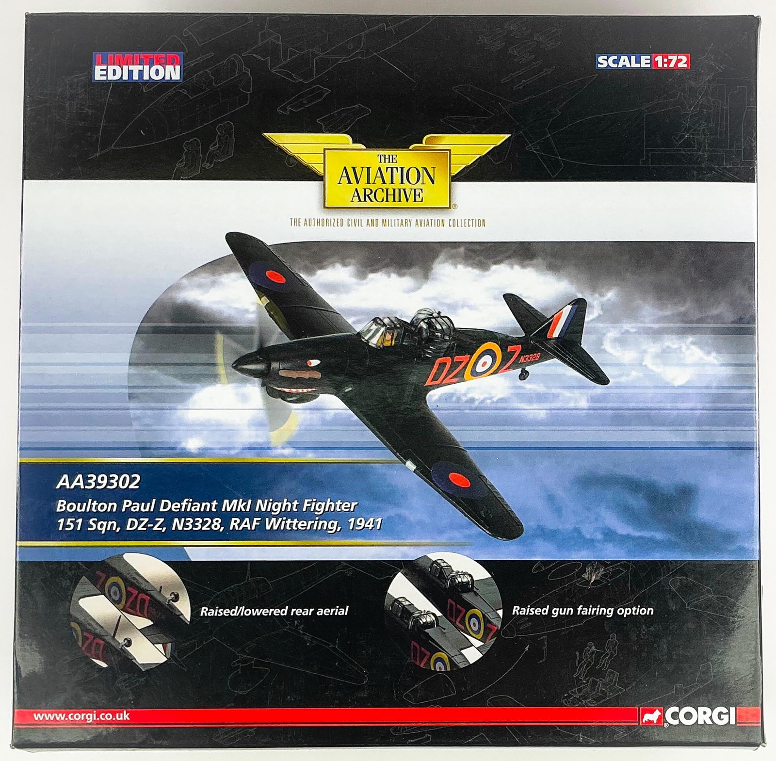 Corgi 1:72 Boulton-Paul Defiant Mk I RAF 151 Sqn N3328 Wittering 1941 AA39302