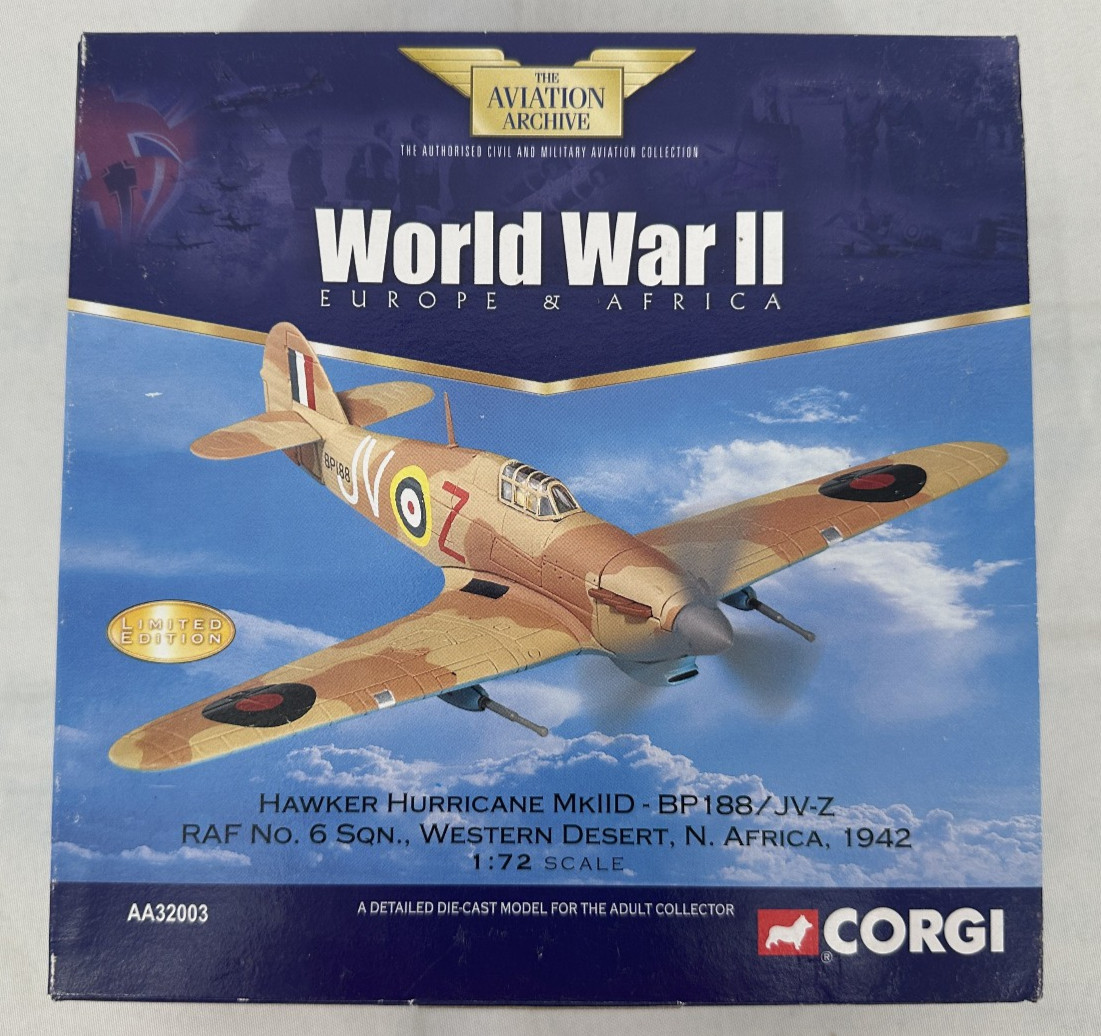 Corgi AA32003 1:72 Diecast Hawker Hurricane MkIID -BP 188/JV-Z RAF MIB LE