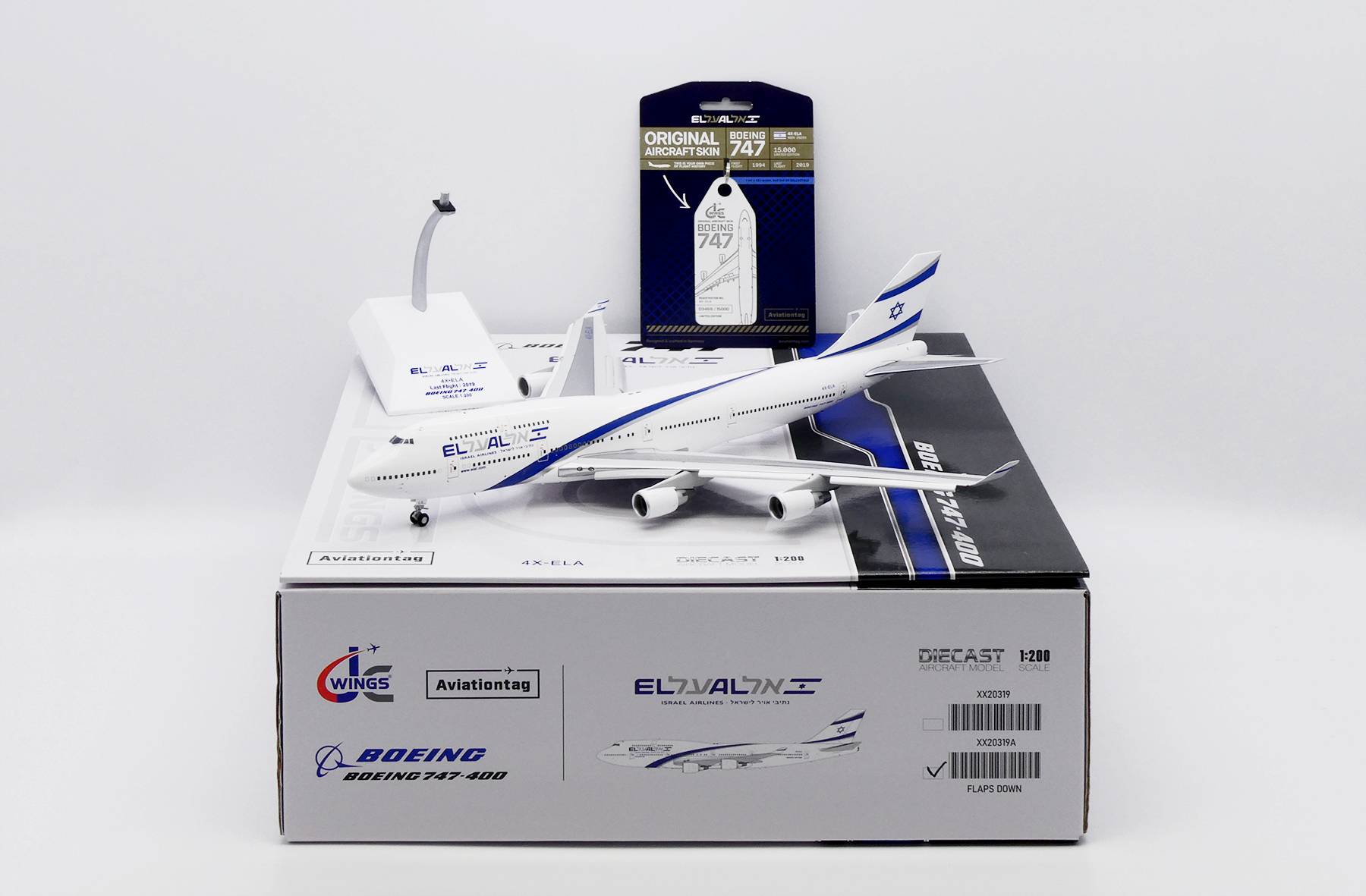 JC Wings EL AL Boeing 747-400 4X-ELA (Flaps Down)1:200 Scale Diecast Model with Original EL AL AviationTag (1st Edition) XX20319A