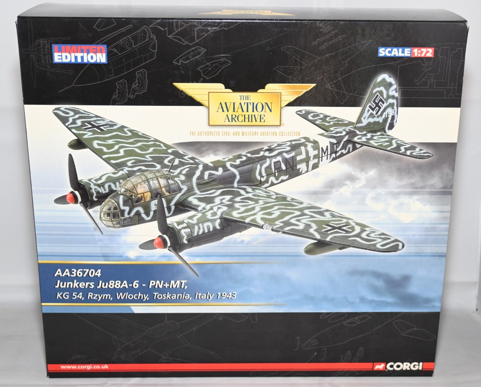 CORGI AVIATION ACHIVE AA36704 1:72 SCALE JUNKERS JU88A-6 PN+MT ITALY 1943
