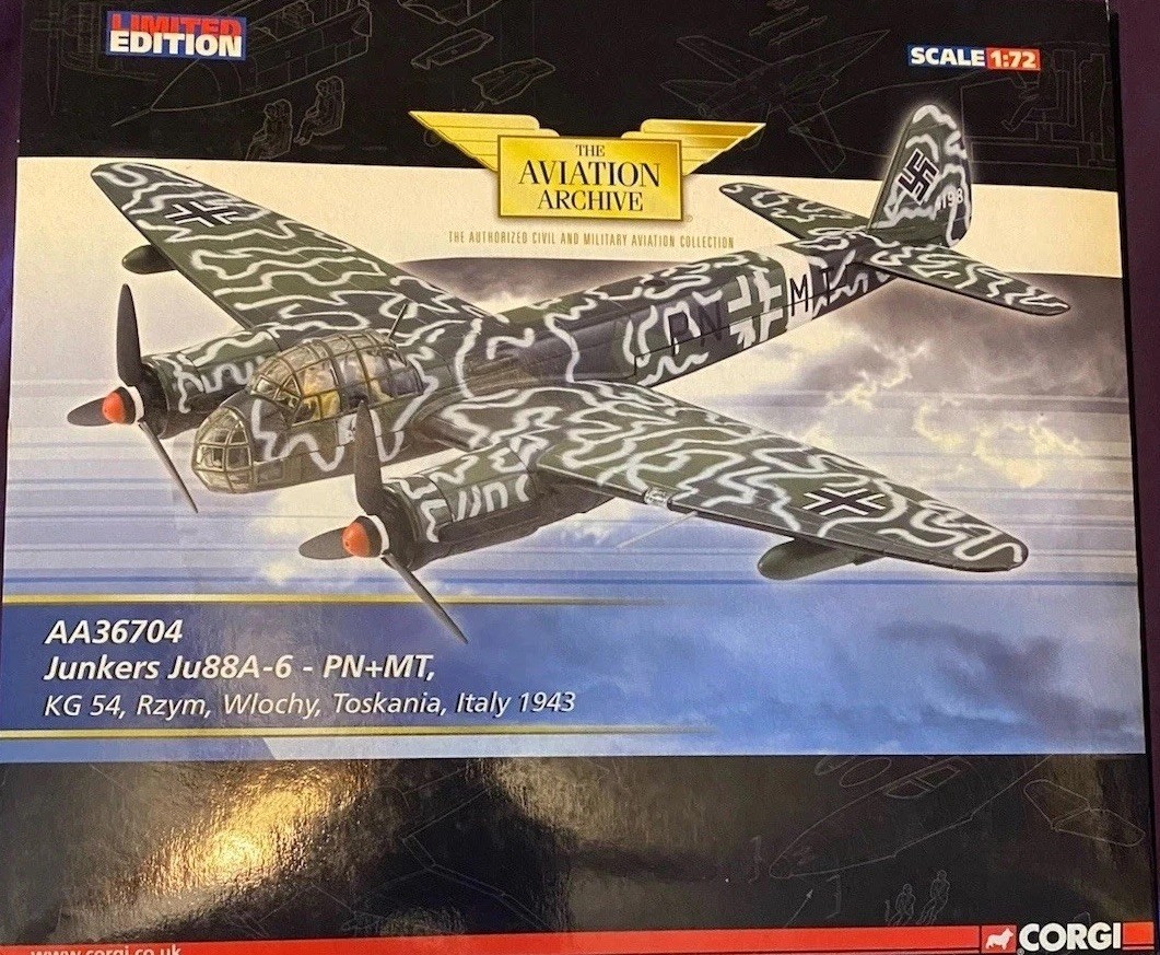 Corgi AA36704 Junkers Ju 88A-6 PN+MT KG 54 Luftwaffe Italy 1943 1/72 Scale
