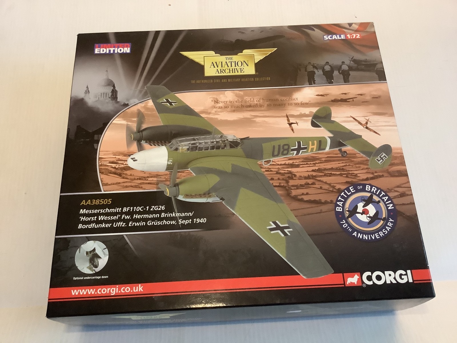 Rare 1/72 Corgi Limited MESSERSCHMITT ME/BF110C AA38505 Horst Wessel Ww2 Plane