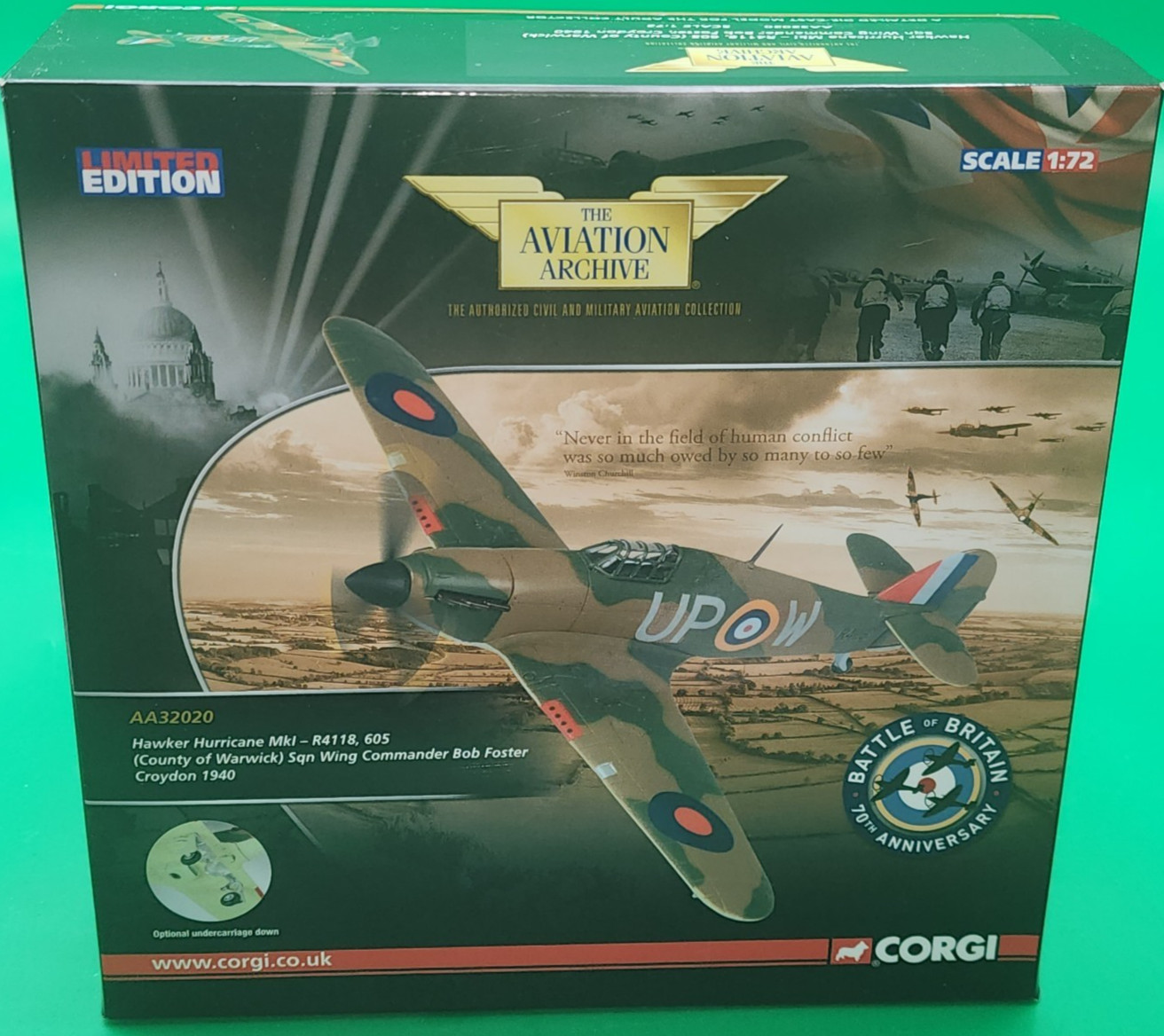 CORGI Aviation Archive AA32020 Hawker Hurricane MK.I Bob Foster 605 Squadron NIB