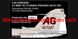 Century Wings 001602 A-6E VA-75 Sunday Puncher AG514 Black Nose version