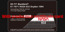 001640 Century Wings SR-71A Blackbird 1/72 Model #61-7971/#832 NASA Dryden