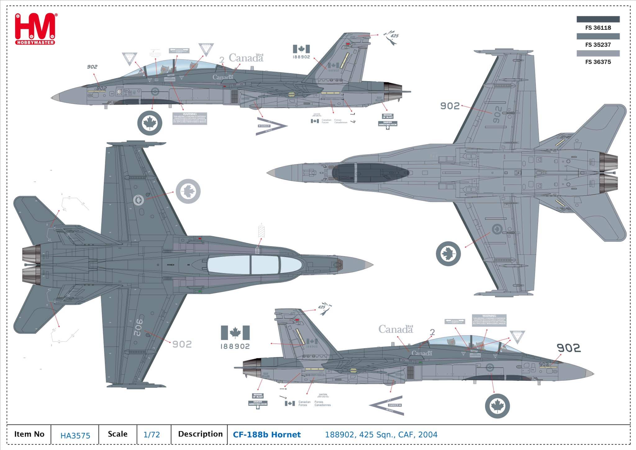 HA3575 Hobby Master CF-188B Hornet 1/72 Model #188902 RCAF No.425 Sqn