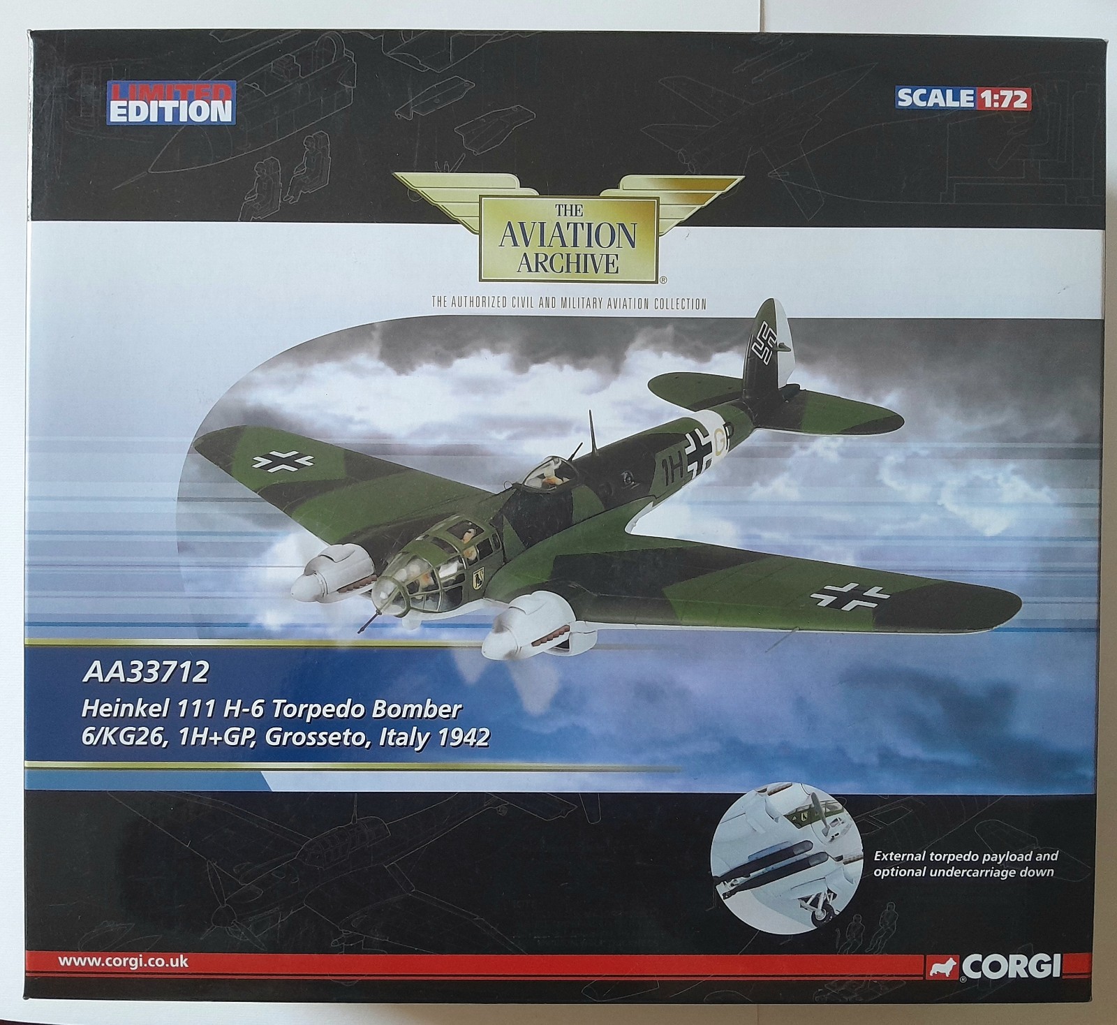 MIB CORGI AA33712 1/72 HEINKEL 111 H-6 TORPEDO BOMBER Grosseto, Italy 1942