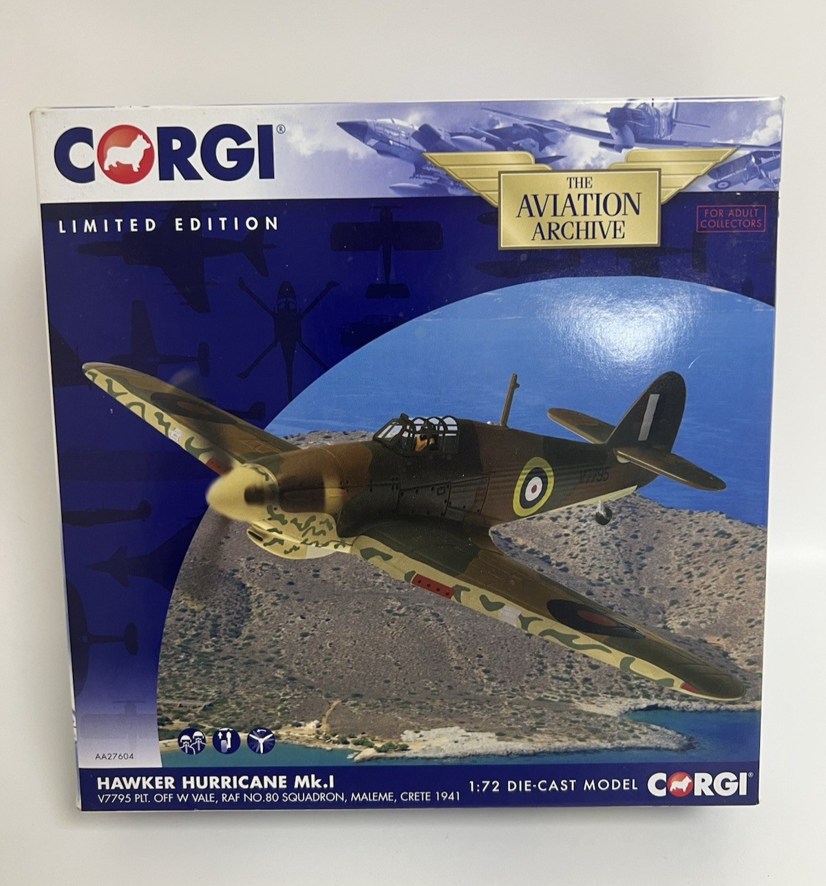Corgi 1:72 AA27604 Hawker Hurricane Mk.I V7795 Plt Off W Vale RAF 80 Sqn Maleme
