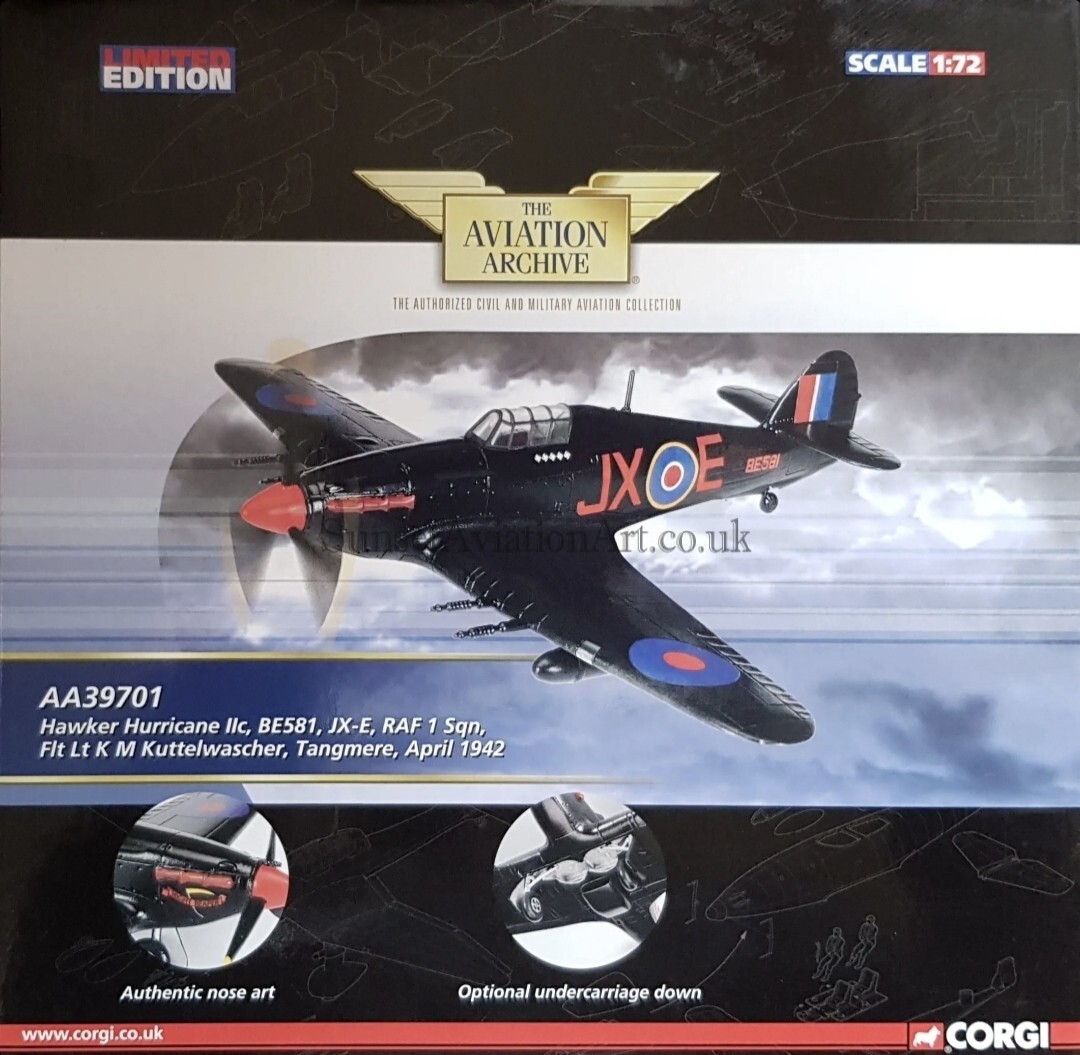 Corgi Hurricane Mk.1Ic-BE581-JX-E RAF 1 Squadron Flt Lt K Kuttelwascher AA39701