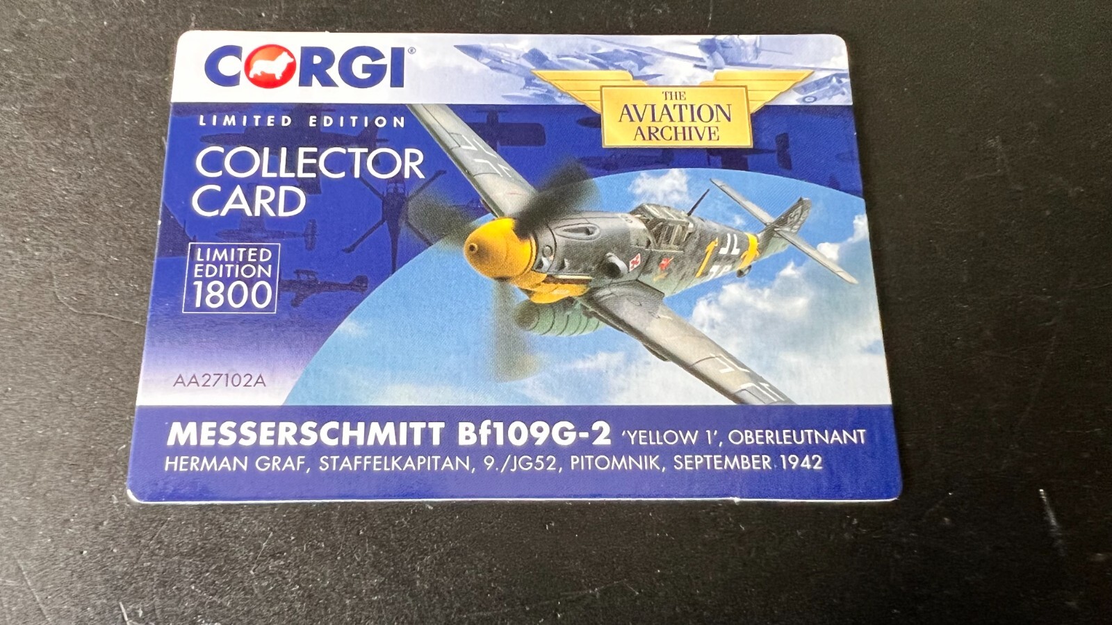 CORGI AA27102A - BF109G-2, COLLECTOR CARD ONLY, NO AIRCRAFT