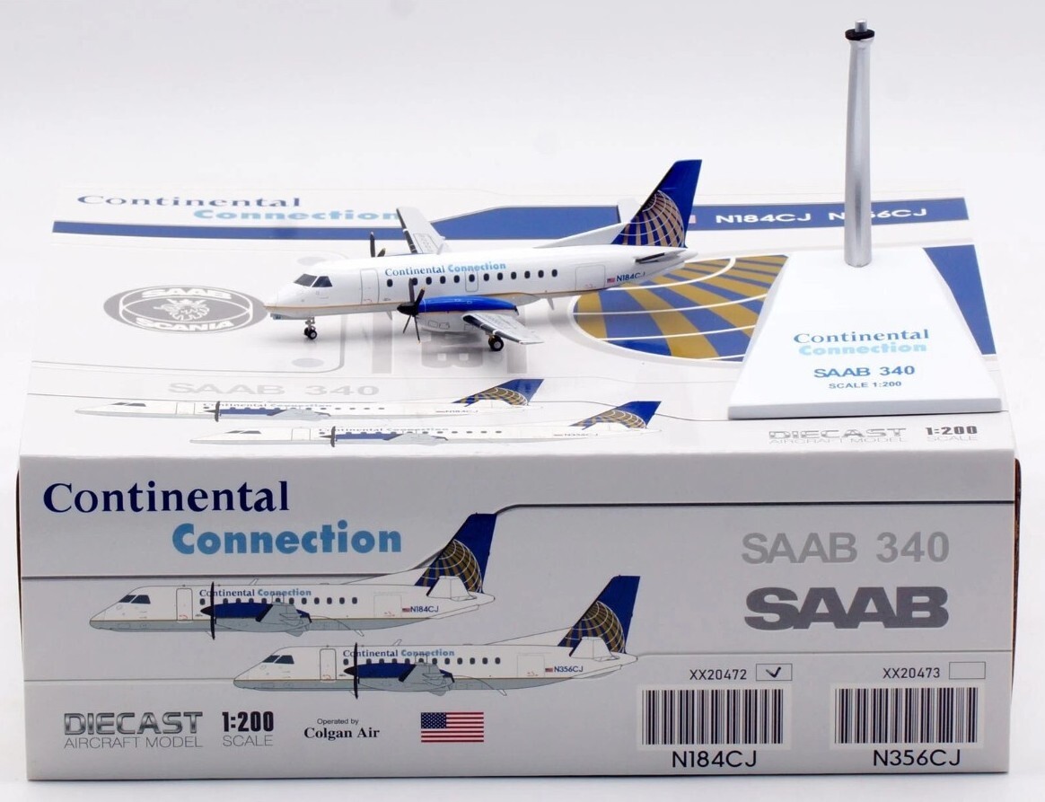 JC Wings XX20472 Continental Connection Saab 340 N184CJ Diecast 1/200 Model New